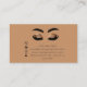 La representación artística de los ojos cerrados con gruesas cejas negras y sombras doradas purpurinoso es una primera impresión sorprendente. Es un diseño que exuda glamour y elegancia, lo que sugiere que el negocio podría estar relacionado con la belleza o la moda. Esta es la razón por la que esta tarjeta de visita se destaca: Apelación visual: la sombra de las cejas purpurinoso y las cejas atrevidas capturan la atención inmediatamente. Es un diseño visualmente cautivador que deja una impresión duradera. Información práctica: Bajo los ojos artísticos, encontrarás todos los detalles esenciales de contacto (número de teléfono, correo electrónico, sitio web y dirección) cuidadosamente organizados con iconos, lo que facilita el contacto. Funcional y Estético: Esta tarjeta equilibra la practicidad con la estética. Proporciona toda la información necesaria de una manera funcional y visualmente agradable. Contar historias: El diseño cuenta una historia de sofisticación y estilo, sugiriendo que el negocio valora la belleza y el detalle.