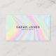 Tarjeta de negocios holográfica moderna minimalista de moda. Personalice este moderno diseño de tarjetas de visita para su profesión. Ajustar las imágenes de gradiente de arcoiris de color pastel y personalizar todo el texto en este diseño profesional y elegante.