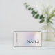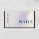 Destacar de la multitud con nuestras elegantes tarjetas de visita. Este diseño único presenta un fascinante fondo holográfico y un diseño minimalista, perfecto para un salón de extensión de pestañas, estilista de uñas, técnicos de cabello y maquillador. Muestra fácilmente tus datos de contacto, sitio web y cuentas de redes sociales, dejando una impresión duradera en los clientes potenciales. Nota: Los detalles holográficos se simulan en la obra de arte. No habrá ningún efecto de brillo holográfico real cuando se imprima.