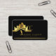 tarjeta de presentación inmobiliaria con logotipo dorado y negro