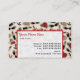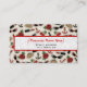 Una tarjeta de visita temática a la moda que presenta un patrón de glamour vintage. El diseño consiste en cerezas, una rosa roja, gafas de sol para los ojos de gato rojo y negro, un monedero de leopardo, anclas rojas y negras y pintalabios rojos. El diseño tiene una combinación de colores rojo y negro.