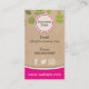 Un diseño de tarjetas de visita natural orgánica para el negocio de la salud o negocios orientados a la naturaleza o cuidado natural de la piel, comida o alimentación saludable. Tiene un fondo de papel kraft marrón, con un patrón de hojas verdes y acentos de rosa caliente para un poco de diversión. También es ideal para tiendas de salud, terapeutas holísticos, clínicas de spa naturales, personas orientadas hacia industrias vegetarianas y veganas y similares, todo natural, orgánicas.
