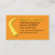 Diez bolas amarillas en línea curva, de tamaño reducido de delante a atrás. Personalice con el nombre de la empresa en amarillo con sombra de caída y otra información de contacto en letra negra. El fondo es naranja.