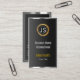 Tarjeta de presentación Metalizado cromada con etiqueta dorada real, marco oscuro y oscuro.