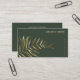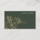 Fondo verde cazador con una hoja única dorada en la esquina inferior izquierda acoplada con fuente de oro sans serif minimalista. El reverso contiene toda la información con el mismo tipo de letra y estilo minimalista con un borde delgado dorado. Visita nuestra tienda para más artículos de oficina y accesorios de este estilo