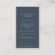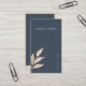 Fondo azul marino con una hoja única dorada en la esquina inferior izquierda acoplada con fuente minimalista sans serif dorado. El reverso contiene toda la información con el mismo tipo de letra y estilo minimalista con un borde delgado dorado. Visita nuestra tienda para más artículos de oficina y accesorios de este estilo