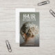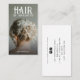 Una moderna tarjeta de negocios de peluquería glamorosa para personalizar con tu especialidad e información. Esta foto muestra el estilo de un boda u otro evento formal, y el gran tipo decorativo es único y elegante. Reemplace esta foto de ejemplo con su propia foto. También hay un eslogan opcional en el reverso de la tarjeta. Puede usarlo o eliminarlo. Añade tu propia foto estilista.