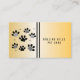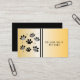 La moderna tarjeta de visita para el cuidado de mascotas cuenta con patas mascotas sobre fondo dorado. Personalice agregando nombre, título, contacto y otros detalles. Utilice la herramienta de diseño para editar o cambiar el estilo de fuente, el tamaño y el color.