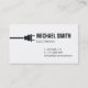 Una tarjeta de visita con enchufe con cable que lleva al nombre. Paleta de colores de blanco y negro que es fácil de leer. Perfecto para electricistas y aquellos que proveen servicios de instalación de cableado eléctrico y de iluminación. Personalice la información de su empresa en las plantillas de texto proporcionadas.