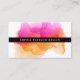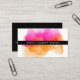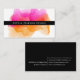 Las tarjetas de visita acuarela de moda incluyen tu nombre o nombre de empresa sobre blanco sobre negro, en un ilustracion de manchas de tinta floreciente en brillantes y coloridos tonos de puesta de sol de rosa fucsia y vara de oro. Añade tu información de contacto completa a la parte posterior en blanco sobre negro.