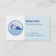 Una tarjeta de visita con el logotipo de una línea azul-moderna de arte de un nadador con googles y gorra de baño nadando entre las olas. Perfecto para los animadores y salvavidas. Personalice fácilmente la información en las plantillas de texto proporcionadas.