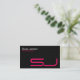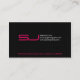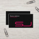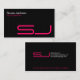 Esta tarjeta de visita negra tiene un patrón de cuadrícula tenue en el fondo y un diseño moderno y elegante con texto magenta y blanco y letra futurista para las iniciales. Una sencilla y elegante tarjeta de visita negra adaptada a una serie de negocios personales o tarjetas de estudiante, como un diseñador gráfico, fotógrafo, diseñador de interiores, reparación de ordenadores o ordenadores, etc.