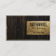 Esta moderna y sencilla tarjeta de visita es perfecta para cualquier profesional. Cuenta con una caja de texto falsa de Relieve metalizado dorado impreso y un borde de pinstripe encima del fondo de madera marrón oscura. Es contemporáneo, elegante, elegante, único y fresco; el diseño perfecto para atraer clientes potenciales. Es una gran elección para consultores fiscales, artistas, agentes inmobiliarios, contadores, trabajadores de la madera, carpinteros y muchos más profesionales. ***NOTA DE DISEÑO IMPORTANTE: Para cualquier solicitud de diseño personalizado, como solicitudes de productos coincidentes, cambios de color, cambios de posición o cualquier otra solicitud de cambio, haga clic en el botón "MENSAJE" o envíe un correo electrónico al diseñador directamente a lafemme.art@gmail.com. Incluso puede enviarle un correo electrónico solicitando un diseño completamente personalizado y nuevo.