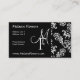 Patrón de damasco blanco y negro. Hermosa damasco de época blanca ornamental elegante sobre negro. Personalice y personalizar la tarjeta de visita con su nombre y nombre inicial.