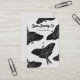 Diseño de mariposa dibujado a mano en bloques negros con un área para mostrar un broche personalizado, esmalte, solapa, cerámica, metalizado, arcilla de polímero o alfiler acrílico. Personalizar este diseño para satisfacer sus necesidades de negocio. Mira el resto de esta suite Jewelry Display Card!