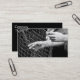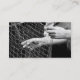 Tarjeta de visita con una foto frontal de las manos con red de pesca. ¡Personalizable. Parte trasera negra con información.