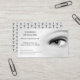 Diseño moderno para especialistas en cuidado ocular. La elegante tarjeta de visita tiene una foto de un ojo sobre un fondo gris.