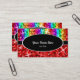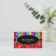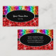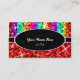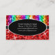 Tarjeta de visita con un diseño moderno con estrellas diseminadas por estilizadas franjas de color arcoiris "secuin look" sobre un fondo rojo, con texto escrito en blanco sobre una forma ovalada negra. Un diseño de personalizable para que puedas personalizar con tu propio texto, imágenes e ideas. Tenga en cuenta que se trata de una imagen de arte digital impresa y no contiene purpurinas o secuencias reales