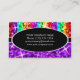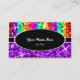 Tarjeta de visita con un diseño moderno con estrellas diseminadas por estilizadas franjas de color arcoiris "secuin look" sobre un fondo morado, con texto escrito en blanco sobre una forma ovalada negra. Un diseño de personalizable para que puedas personalizar con tu propio texto, imágenes e ideas. Tenga en cuenta que se trata de una imagen de arte digital impresa y no contiene purpurinas o secuencias reales