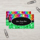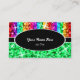 Tarjeta de visita con un diseño moderno con estrellas diseminadas por estilizadas franjas de color arcoiris "secuin look" sobre un fondo verde, con texto escrito en blanco sobre una forma ovalada negra. Un diseño de personalizable para que puedas personalizar con tu propio texto, imágenes e ideas. Tenga en cuenta que se trata de una imagen de arte digital impresa y no contiene purpurinas o secuencias reales