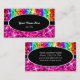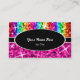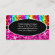 Tarjeta de visita con un diseño moderno con estrellas diseminadas por estilizadas franjas de color arcoiris "secuin look" sobre un fondo rosa, con texto escrito en blanco sobre una forma ovalada negra. Un diseño de personalizable para que puedas personalizar con tu propio texto, imágenes e ideas. Tenga en cuenta que se trata de una imagen de arte digital impresa y no contiene purpurinas o secuencias reales