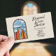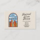 Tarjetas de visita con el ilustracion de mano de una vidriera con un cielo azul, nubes blancas y edificios rojos y amarillos: perfecto para un artista de vidrio teñido, pero también diseño interior, florista, artista, planificador de bodas, etc.