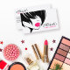 Tarjeta de visita con una hermosa cara de chica de moda en blanco y negro con labios rosas sobre fondo blanco. Perfecto para la promoción de su empresa. Adecuado para maquilladores, cosmetólogos, extensión de abadejo, peluqueros, estilistas, salón de spa, salón de belleza y peluquería o agencia de modelos. ¡Personalizable. Colección de productos de marca coincidentes: com com