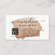 Una tarjeta de visita de un artista de maquillaje tipográfico moderno y minimalista con un pincel de maquillaje metálico de oro subió. Tipografía de moda e íconos de medios sociales.