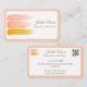 Un diseño elegante y moderno de tarjetas de visita de melocotón para artistas de maquillaje y especialistas en novias. Esta tarjeta, que ofrece trazos suaves de pincel acuático y tipografía elegante, es perfecta para mostrar su marca de belleza con clase. Personalizable completo con la información de contacto y las redes sociales.