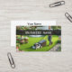 Design A Man Mowing Lawn Care Card Card incluye a un hombre cortando el césped y la información que se puede personalizar fácilmente para que se adapte a su servicio de cuidado del césped.