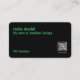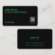 Una tarjeta de visita diseñada para desarrolladores, con un fondo oscuro con un diseño mínimo que intenta emular un ambiente terminal. El código QR se generó utilizando qr-code-generator.com, que permite la actualización y seguimiento de códigos QR dinámicos según sea necesario.