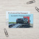 Modelo de tarjeta de negocio de transporte de automóviles y de transporte de automóviles en línea con la imagen de un transportista de automóviles que transporta dos vehículos. Un diseño inteligente de dos lados con su nombre o nombre comercial en la parte delantera y sus datos de contacto en la parte posterior.