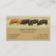 Una tarjeta de visita que muestra un campo rural con bovino Angus negro y rojo. Buen diseño para cualquiera en la industria agrícola y agrícola.