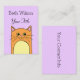 Una tarjeta de visita simple, bonita y llamativa que incluye un naranja, un gato dibujado a mano y texto de personalizable delante y detrás para tu nombre e información. Se puede cambiar el color de fondo.