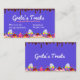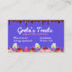 Dulces y golosinas de chocolate goteando tarjeta de negocios en morado.