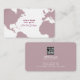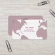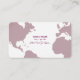 Una buena tarjeta de visita para un guía turístico o una agencia de viajes con la imagen de un mapa morado grisáceo del mundo al fondo.
