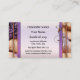 Una tarjeta de visita con una barra de jabón en forma de corazón y flores de lavanda con una etiqueta opcional en la parte delantera. Hermoso para cualquiera que venda jabón artesanal o un spa, masajista o tienda de regalos.