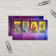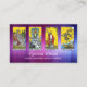 Tarjeta de visita con sus propias fotos (opcional) enmarcadas con un fondo mágico de gradiente púrpura azul. También puede reemplazar la foto de atrás con un código QR si lo desea. Hermoso para un consejero psíquico que usa tarjetas de tarot o con otras fotos para cualquier otro negocio.