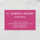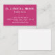 Este diseño minimalista, moderno y elegante de las tarjetas de visita presenta un fondo magenta. Podría ser utilizado por un profesional como un médica familiar, un médica, un psiquiatra o un pediatra. El nombre, profesión y datos de contacto pueden ser personalizados.