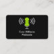 Plantilla de diseño de tarjeta de presentación de podcaster de medios creada con un diseño clásico y gráfico de micrófono de podcasting.