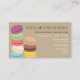 Una tarjeta de visita para una panadería o pastelería con un ilustracion de ocho macarons franceses a la izquierda. Personalice el texto con su información.