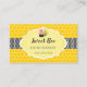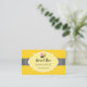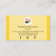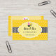 © 2021 Socialite Designs Inc. Plantilla de tarjetas de presentación para diseño de abejas y bizcochos de miel. El fondo del diseño tiene un vibrante fondo de color amarillo, una cinta polka-punto negro y un elegante banner de texto para su información de negocios. La parte trasera tiene el mismo diseño de quequitos y abejas, junto con su nombre e información de contacto. Los iconos de los medios sociales se pueden mover, cambiar de tamaño o borrar si se va al personalizar del diseño de la tarjeta de visita. Si necesita ayuda para personalizar esta tarjeta de visita, por favor envíe un mensaje a Socialite Designs.