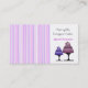 Una moderna y elegante tarjeta de visita para un negocio de panadería, de decoración de pasteles, postres o de restauración. Los tonos de suave rayas violetas y malvas y los pasteles de diseño acentúan este diseño. Personalizar con toda su información.