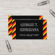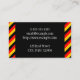 Este diseño de tarjeta de visita podría ser utilizado por un profesional como un experto en alemán, un profesor de alemán, un traductor de alemán o un tutor de alemán. El nombre, la profesión y los datos de contacto se pueden personalizar. También cuenta con rayas negras, rojas y amarillas, inspiradas en los colores de la bandera nacional alemana.
