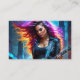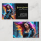 Arte original de ©Gifts_AtTheCorner2023 ©mjm2023 Esta llamativa tarjeta de visita muestra a una mujer con el pelo violento púrpura sosteniendo una guitarra en un ambiente de ciudad. El diseño es perfecto para un profesor de guitarra que busca sobresalir y atraer a potenciales estudiantes. La imagen transmite una sensación de creatividad y musicalidad, lo que la hace ideal para cualquiera en la industria de la educación musical.