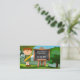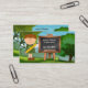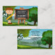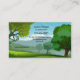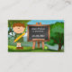 Una bonita y caprichosa tarjeta de visita para un profesor, con una imagen personalizado con un profesor y pizarra con manzana sobre un paisaje de fondo verde.