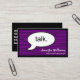 Estas tarjetas profesionales simples púrpuras "Talk" modernas son una opción divertida y única para un psicólogo, psiquiatra, consejero o cualquier otro negocio centrado en hablar o en la terapia. Esta tarjeta morada de bambú es realmente atractiva; hay que notar y recordar.