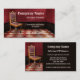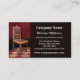 La tarjeta de visita profesional para la reparación de muebles y tapicería o mobiliario incluye una silla vintage en una sala de fondo retro. Esta tarjeta también podría funcionar para una tienda de muebles de segunda mano.