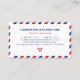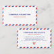 Tarjeta de presentación para sobres de correo rojo y azul. Tarjeta de visita de personalizable con diseño de sobres de correo aéreo rojo y azul con fondo blanco. Personalice agregando su nombre o nombre de negocio y detalles. Esta tarjeta de visita clásica es perfecta para diseñadores gráficos, consultores y trabajos relacionados con viajes y envíos.