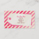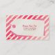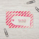 Tienda de ropa / tarjeta de visita al por menor con un fondo de diseño de rayas negras en diagonal rosa y ilustracion de etiquetas de compra en la parte delantera y trasera. Personalice el texto con su información.